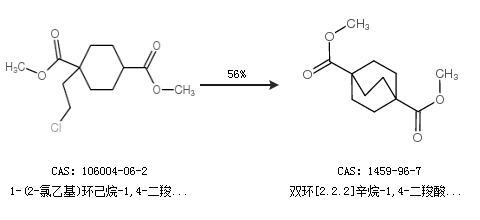 1.通过1-(2-氯乙基)环己烷-1,4-二羧酸二甲酯合成双环[2.2.2]辛烷-1,4-二羧酸二甲酯,收率约56%;