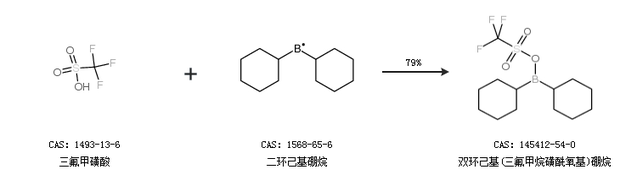 1.通过三氟甲磺酸和二环己基硼烷合成双环己基(三氟甲烷磺酰氧基)硼烷,收率约79%;