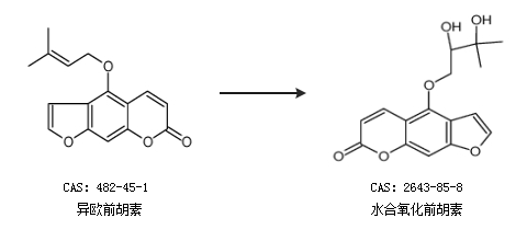 1.通过氧化前胡素合成水合氧化前胡素,收率约92%;