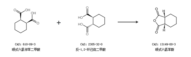 2.通过顺式六氢邻苯二甲酸和反-1,2-环己烷二甲酸合成顺式六氢苯酐