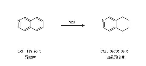 1.通过异喹啉合成四氢异喹啉,收率约92%;