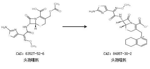 中文别名 头孢喹诺;7-[(Z)-2-(2-氨基-4-噻唑基)-2-(甲氧基亚氨基)乙酰胺基]-8-氧代-5-硫杂-1-氮杂双环[4.2.0]辛-2-烯-2-甲酸-3-甲基-(5,6,7,8-四氢喹啉鎓)内盐;头孢喹咪;