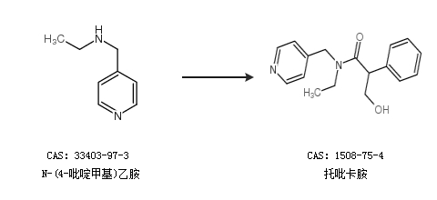 2.通过乙酰托品酰氯和N-(4-吡啶甲基)乙胺合成托吡卡胺