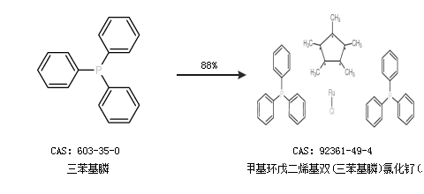 1.通过三苯基膦合成五甲基环戊二烯基双(三苯基膦)氯化钌(II),收率约88%;