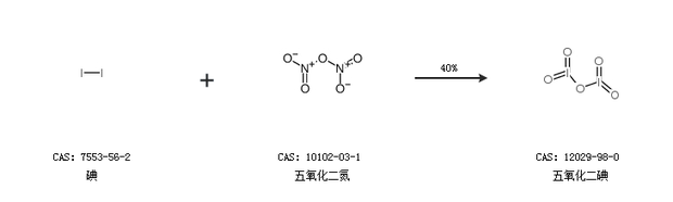 2.通过碘和五氧化二氮合成五氧化二碘,收率约40%;
