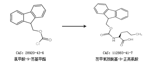 1.通过氯甲酸-9-芴基甲酯合成芴甲氧羰酰基-D-正亮氨酸