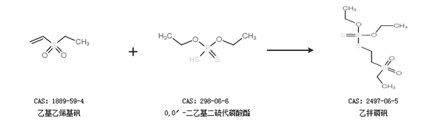 2.通过乙基乙烯基砜和O,O′-二乙基二硫代磷酸酯合成乙拌磷砜