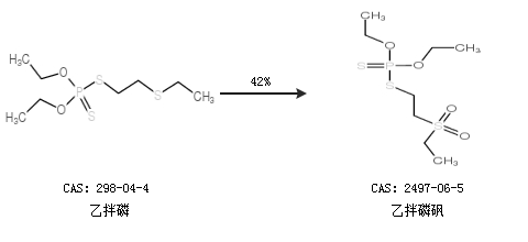 1.通过乙拌磷合成乙拌磷砜,收率约42%;