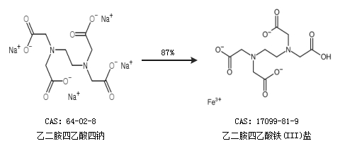 1.通过乙二胺四乙酸四钠合成乙二胺四乙酸铁(III)盐,收率约87%;