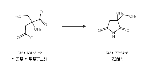 1.通过2-乙基-2-甲基丁二酸合成乙琥胺