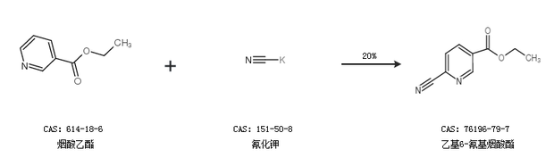2.通过烟酸乙酯和氰化钾合成乙基6-氰基烟酸酯,收率约20%;