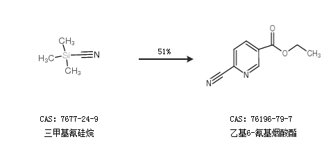 1.通过三甲基氰硅烷合成乙基6-氰基烟酸酯,收率约51%;