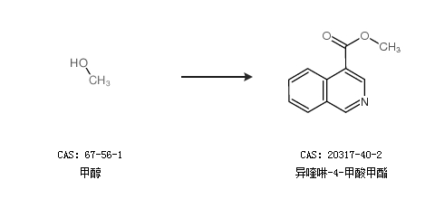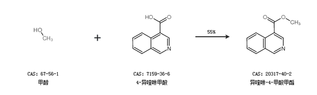 1.通过甲醇和4-异喹啉甲酸合成异喹啉-4-甲酸甲酯,收率约55%;