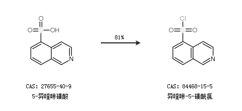 1.通过5-异喹啉磺酸合成异喹啉-5-磺酰氯,收率约81%;