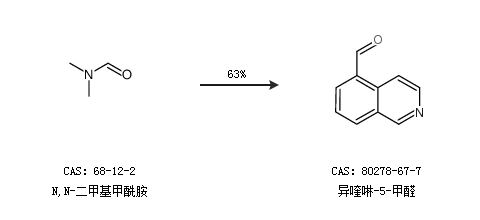 2.通过N,N-二甲基甲酰胺合成异喹啉-5-甲醛,收率约63%;