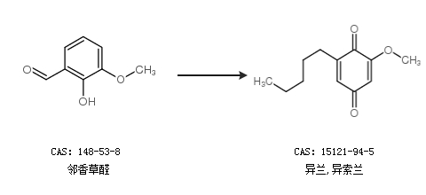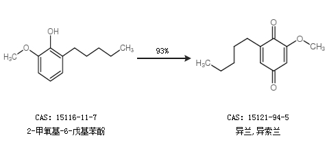 1.通过2-甲氧基-6-戊基苯酚合成异兰,异索兰,收率约93%;
