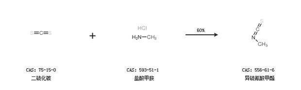 1.通过二硫化碳和盐酸甲胺合成异硫氰酸甲酯,收率约60%;
