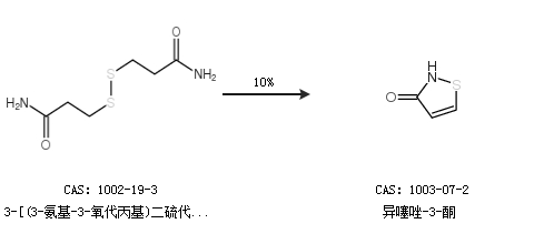 2.通过3-[(3-氨基-3-氧代丙基)二硫代]丙酰胺合成异噻唑-3-酮,收率约10%;
