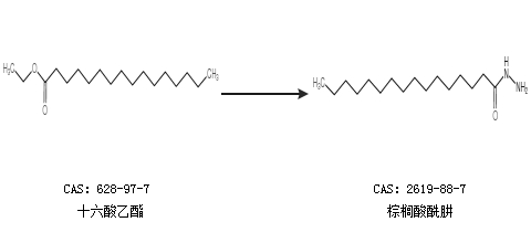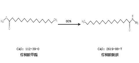 1.通过棕榈酸甲酯合成棕榈酸酰肼,收率约80%;
