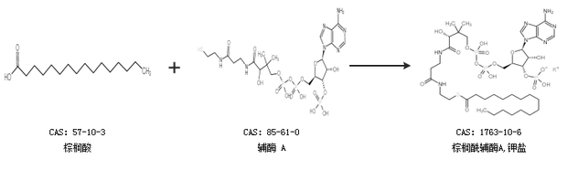 2.通过辅酶 A合成棕榈酰辅酶A,钾盐