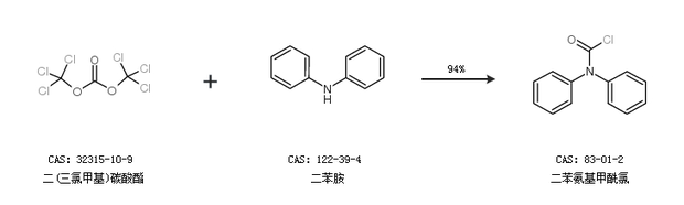 1.通过二(三氯甲基)碳酸酯和二苯胺合成二苯氨基甲酰氯,收率约94%;