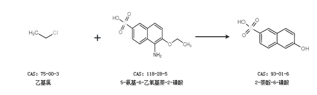 2.通过乙基氯和5-氨基-6-乙氧基萘-2-磺酸合成2-萘酚-6-磺酸
