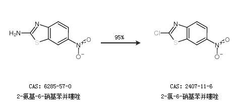 2.通过2-氨基-6-硝基苯并噻唑合成2-氯-6-硝基苯并噻唑,收率约95%;