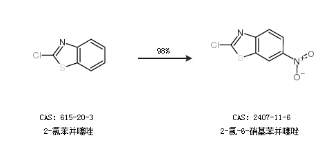 1.通过2-氯苯并噻唑合成2-氯-6-硝基苯并噻唑,收率约98%;
