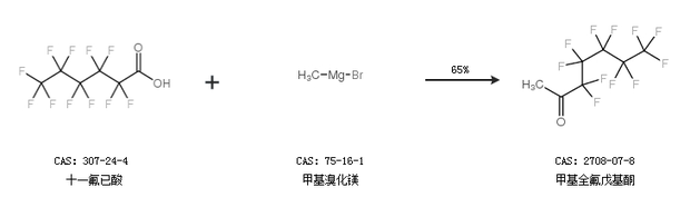1.通过十一氟已酸和甲基溴化镁合成甲基全氟戊基酮,收率约65%;