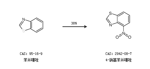 1.通过苯并噻唑合成4-硝基苯并噻唑,收率约38%;
