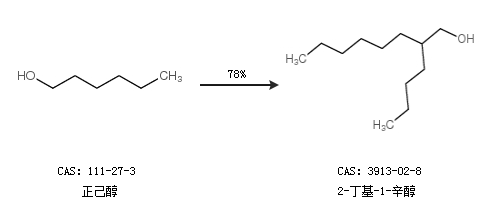 1.通过正己醇合成2-丁基-1-辛醇,收率约78%;