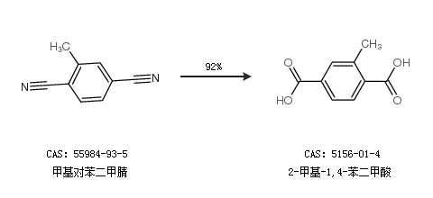1.通过甲基对苯二甲腈合成2-甲基-1,4-苯二甲酸,收率约92%;