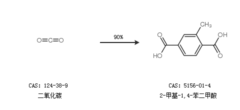 2.通过二氧化碳合成2-甲基-1,4-苯二甲酸,收率约90%;
