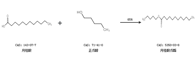 1.通过月桂酸和正戊醇合成月桂酸戊酯,收率约65%;