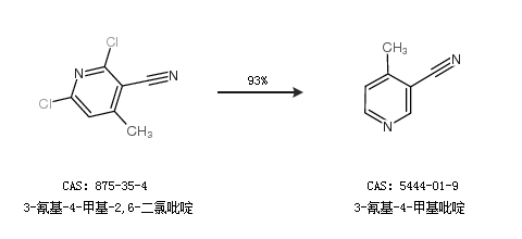 1.通过3-氰基-4-甲基-2,6-二氯吡啶合成3-氰基-4-甲基吡啶,收率约93%;