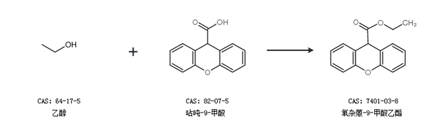 1.通过乙醇和呫吨-9-甲酸合成氧杂蒽-9-甲酸乙酯