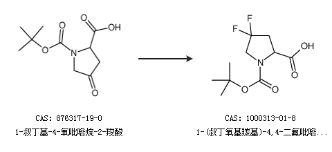 1.通过1-叔丁基-4-氧吡咯烷-2-羧酸合成1-(叔丁氧基羰基)-4,4-二氟吡咯烷-2-羧酸