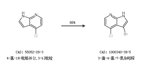 1.通过4-氯-1H-吡咯并[2,3-b]吡啶合成3-溴-4-氯-7-氮杂吲哚,收率约88%;