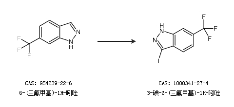 1.通过6-(三氟甲基)-1H-吲唑合成3-碘-6-(三氟甲基)-1H-吲唑