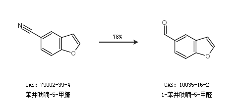 2.通过苯并呋喃-5-甲腈合成1-苯并呋喃-5-甲醛,收率约78%;
