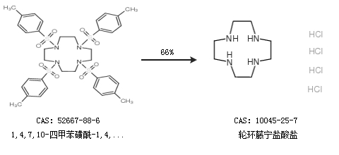 1.通过1,4,7,10-四甲苯磺酰-1,4,7,10-四氮杂环十二烷合成轮环藤宁盐酸盐,收率约66%;