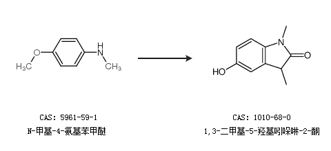 2.通过N-甲基-4-氨基苯甲醚合成1,3-二甲基-5-羟基吲哚啉-2-酮