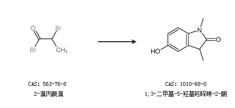 1.通过2-溴丙酰溴合成1,3-二甲基-5-羟基吲哚啉-2-酮