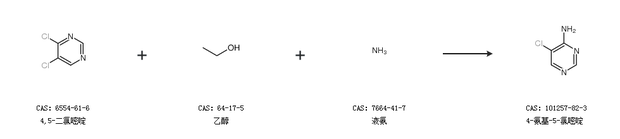 2.通过4,5-二氯嘧啶、乙醇和液氨合成4-氨基-5-氯嘧啶