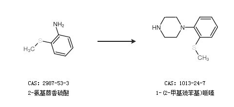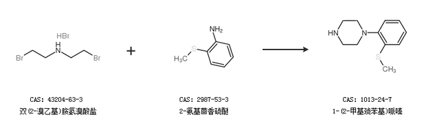 1.通过双(2-溴乙基)胺氢溴酸盐和2-氨基茴香硫醚合成1-(2-甲基巯苯基)哌嗪
