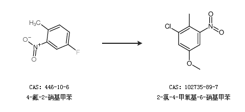 2.通过4-氟-2-硝基甲苯合成2-氯-4-甲氧基-6-硝基甲苯