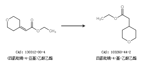 1.通过(四氢吡喃-4-亚基)乙酸乙酯合成四氢吡喃-4-基-乙酸乙酯,收率约97%;