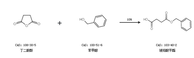 1.通过丁二酸酐和苯甲醇合成琥珀酸苄酯,收率约10%;
