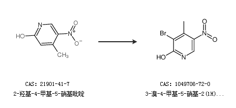 1.通过2-羟基-4-甲基-5-硝基吡啶合成3-溴-4-甲基-5-硝基-2(1H)-吡啶酮