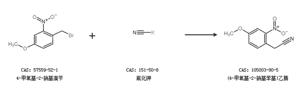 2.通过4-甲氧基-2-硝基溴苄和氰化钾合成(4-甲氧基-2-硝基苯基)乙腈